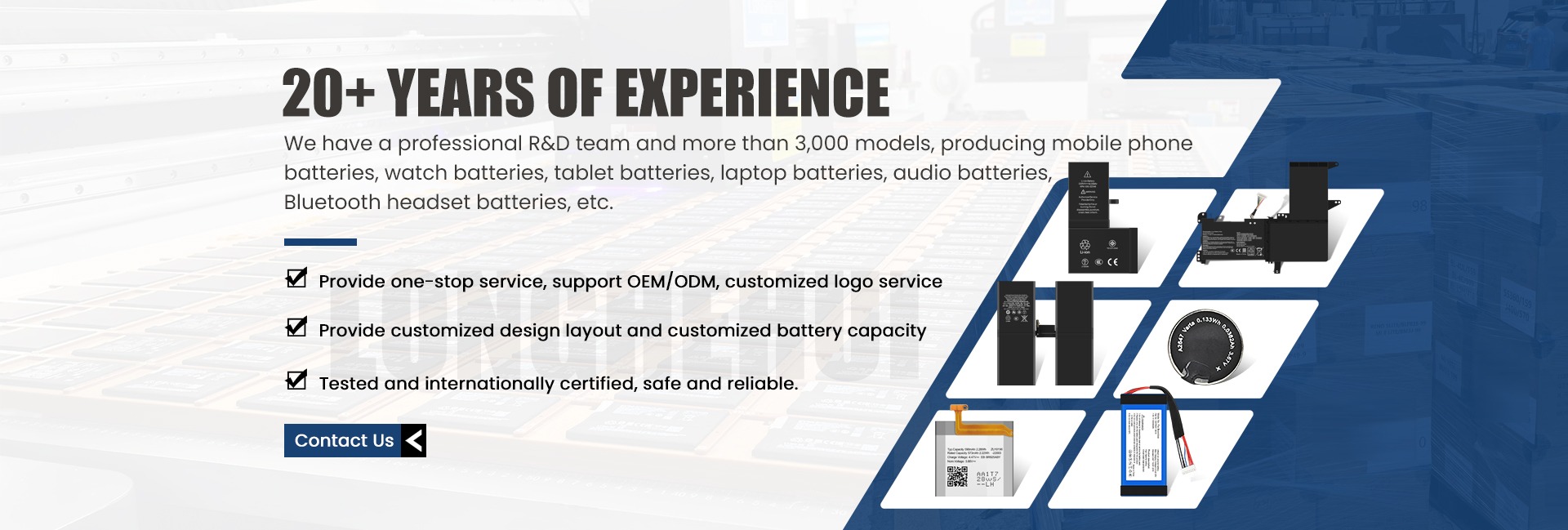 Productos principales:Batería del teléfono, Batería del teléfono móvil, Batería del reloj, Batería de la tableta, Batería del ordenador portátil